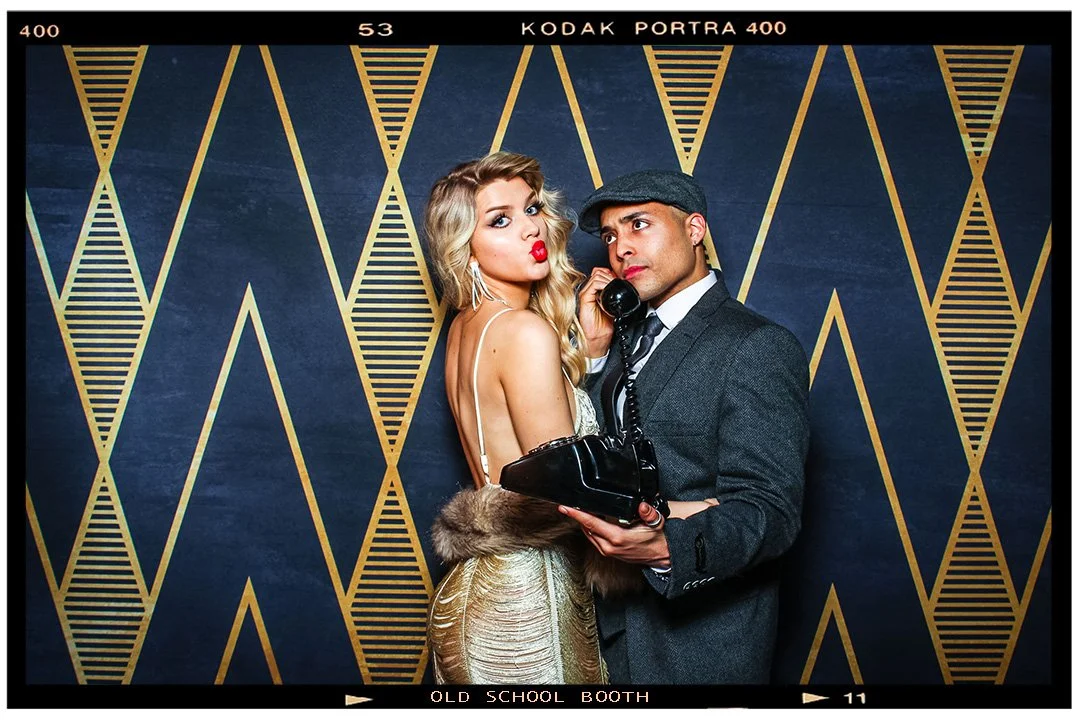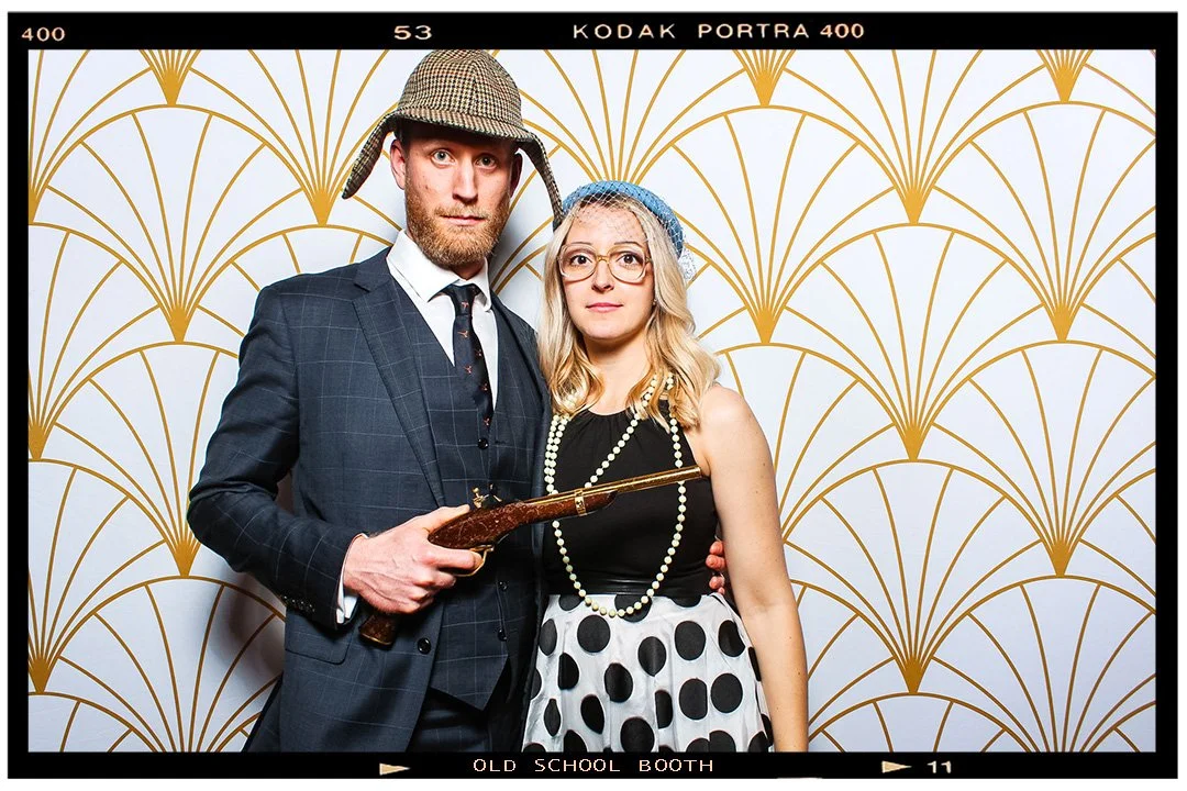 At Old School Booth we aim to compliment your event perfectly with our genuine, hand built antique photo booths and selection of period correct props. We have a selection of vintage backdrops and can create custom print designs to match your wedding stationery / corporate branding to give your guests a fully immersive experience that they wont forget.
